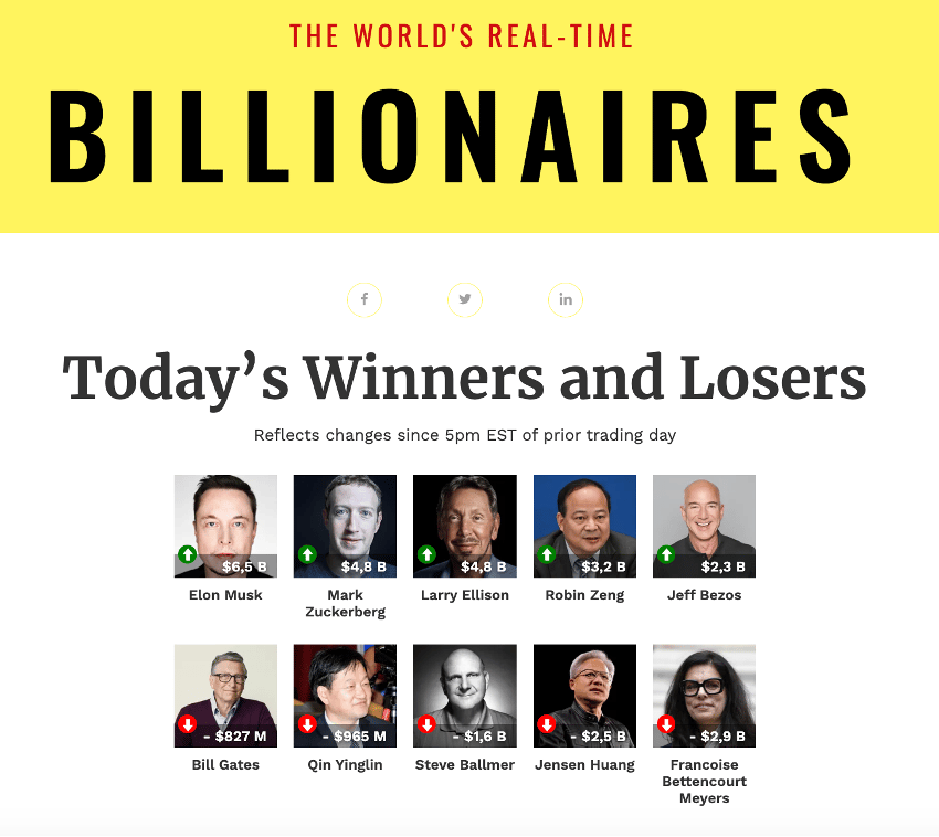 En su página web, Forbes mantiene también un listado actualizado de manera permanente sobre los cambios en el valor de todas estas fortunas: