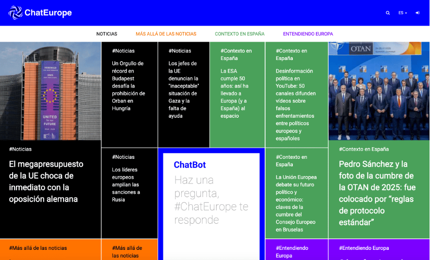 El pasado 1 de julio de 2025 se lanzó ChatEurope, una plataforma europea de noticias en la que participan 15 medios y compañías europeos y que cuenta con un chatbot impulsado por IA que responde las preguntas de los usuarios sobre noticias europeas en todos los idiomas de la UE.