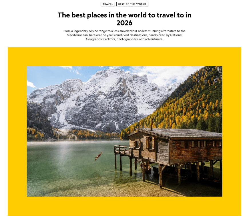 La revista National Geographic acaba de publicar su especial anual “Best of the World” sobre los 25 mejores destinos para viajar a lo largo de 2026, seleccionados por los editores, fotógrafos y aventureros de esta prestigiosa publicación.