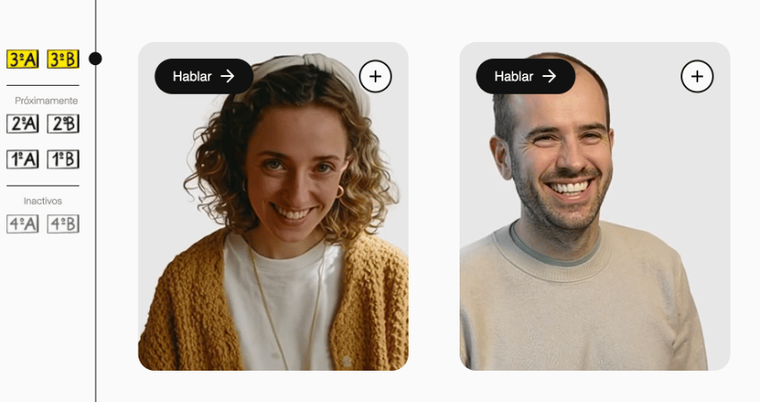 El producto contará con ocho avatares de cuatro generaciones: Gen Z, Millenials, Gen X y Boomers. De momento están disponibles los dos primeros avatares, que son Millenials, con los que ya se puede mantener una conversación sobre nuestra propuesta. Cada mes estará disponible una generación diferente.